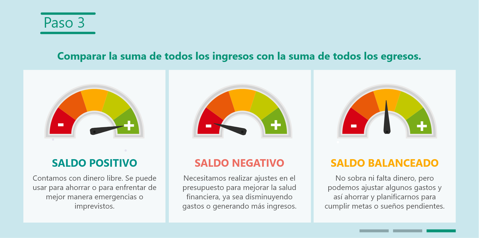 Podremos conocer si mes a mes tenemos dinero para ahorrar en algún instrumento financiero formal que entregue ganancias o rentabilidad y que tenga nuestro dinero seguro. Asimismo, si nuestros ingresos lo permiten, en el presupuesto podemos incluir un ítem de ahorro mensual, para así generar un hábito que nos de la posibilidad de tener dinero para futuras emergencias, darse gustos o enfrentar de mejor manera posibles dificultades.